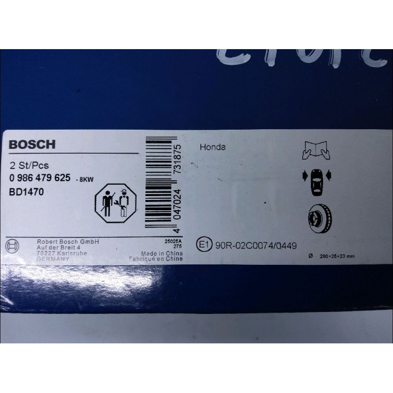 BOSCH 2 DISQUES AVANT 0986479625 BD1470 280X25X23MM 90R-02C0074/0449 HONDA CIVIC IX (FK) 1.4 I-VTEC (FK1) (2012/02-2016/12) 1.8 I-VTEC (FK2) (2012/02-2016/12) 2.2 I-DTEC (FK3) (2012/02-2016/12) 1.6 I-DTEC (FK3) (2013/02-2016/12) HONDA ACCORD VII (CL, CN) 2.0 (CL7) (2003/02-2008/05) HONDA ACCORD VII TOURER (CM, CN) 2.0 (CM1) (2003/04-2008/05) HONDA CIVIC X A TROIS VOLUMES (FC_) 1.6 I-VTEC LPG (2019/01-2022/12)